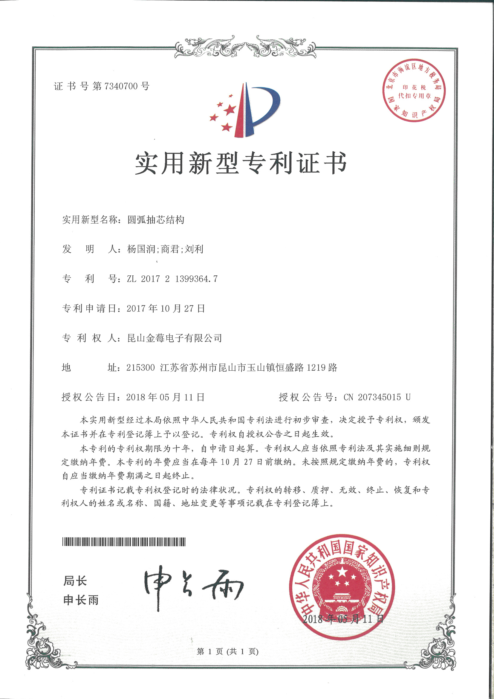 7340700專利號-圓弧抽芯結(jié)構(gòu)