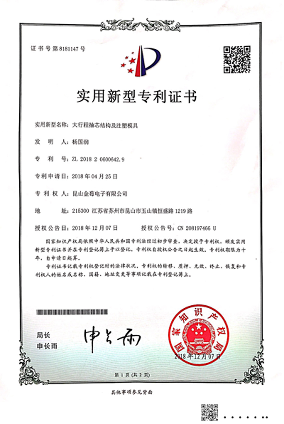 8181147專利號-大行程抽芯結(jié)構(gòu)及注塑模具