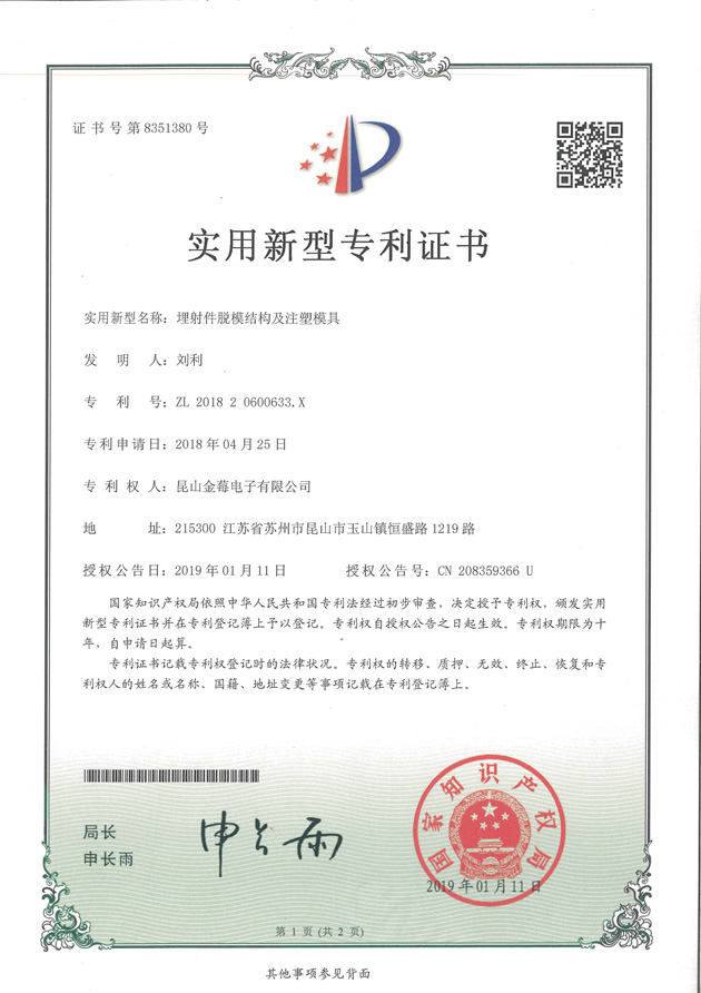 8351380專利號-埋設(shè)件脫模結(jié)構(gòu)及注塑模具