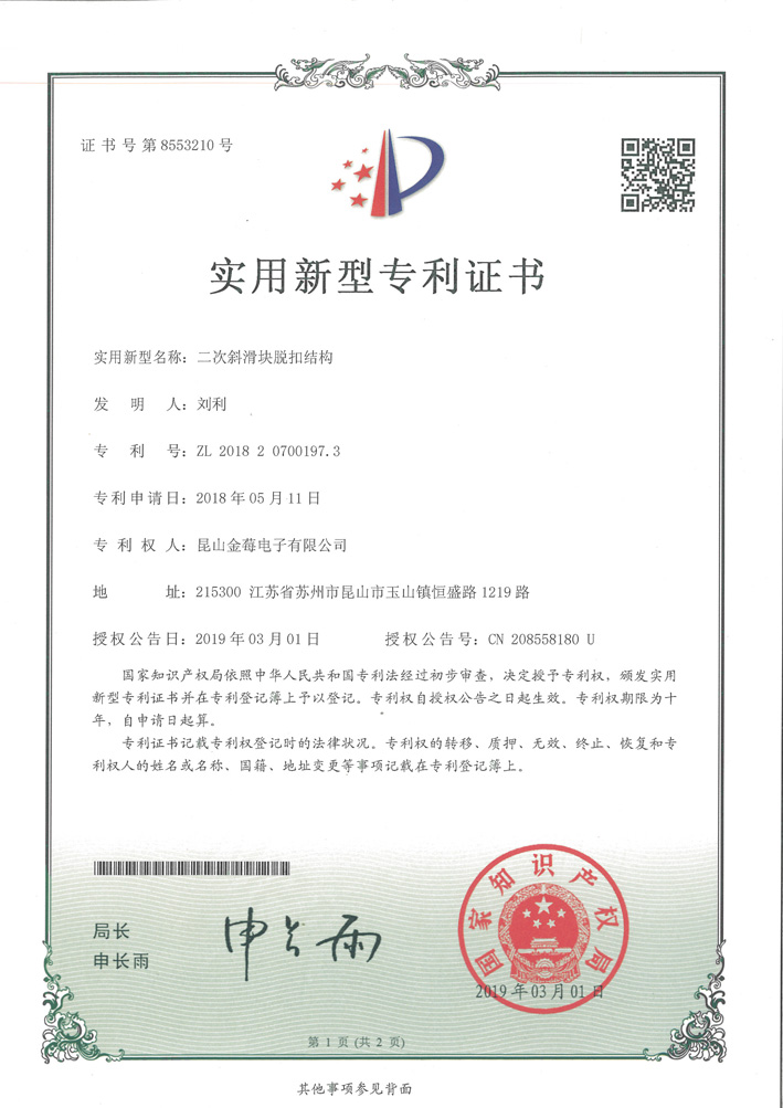 8553210專利號-二次斜滑塊脫扣結(jié)構(gòu)