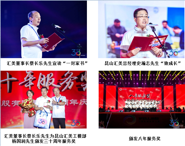 服務獎頒獎環節,8年、12年、20年、30年的服務獎員工逐一走過紅毯,走上舞臺。30年來,多少匯美人,在各自的崗位上,忘我勞動,勤勉工作,在奉獻中實現著自我的價值。他們用智慧和汗水,為公司的成長壯大貢獻力量。